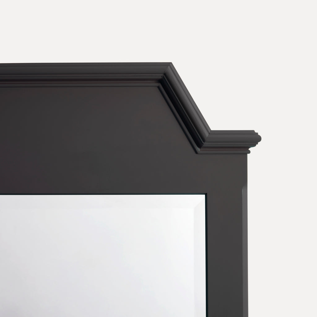 Interior backs feature traditional tongue-and-groove detail, and shelves are adjustable on birds-beak supports. Mirrors are fitted with Belgian glass, generously bevelled to reflect light beautifully, bringing depth to a room.