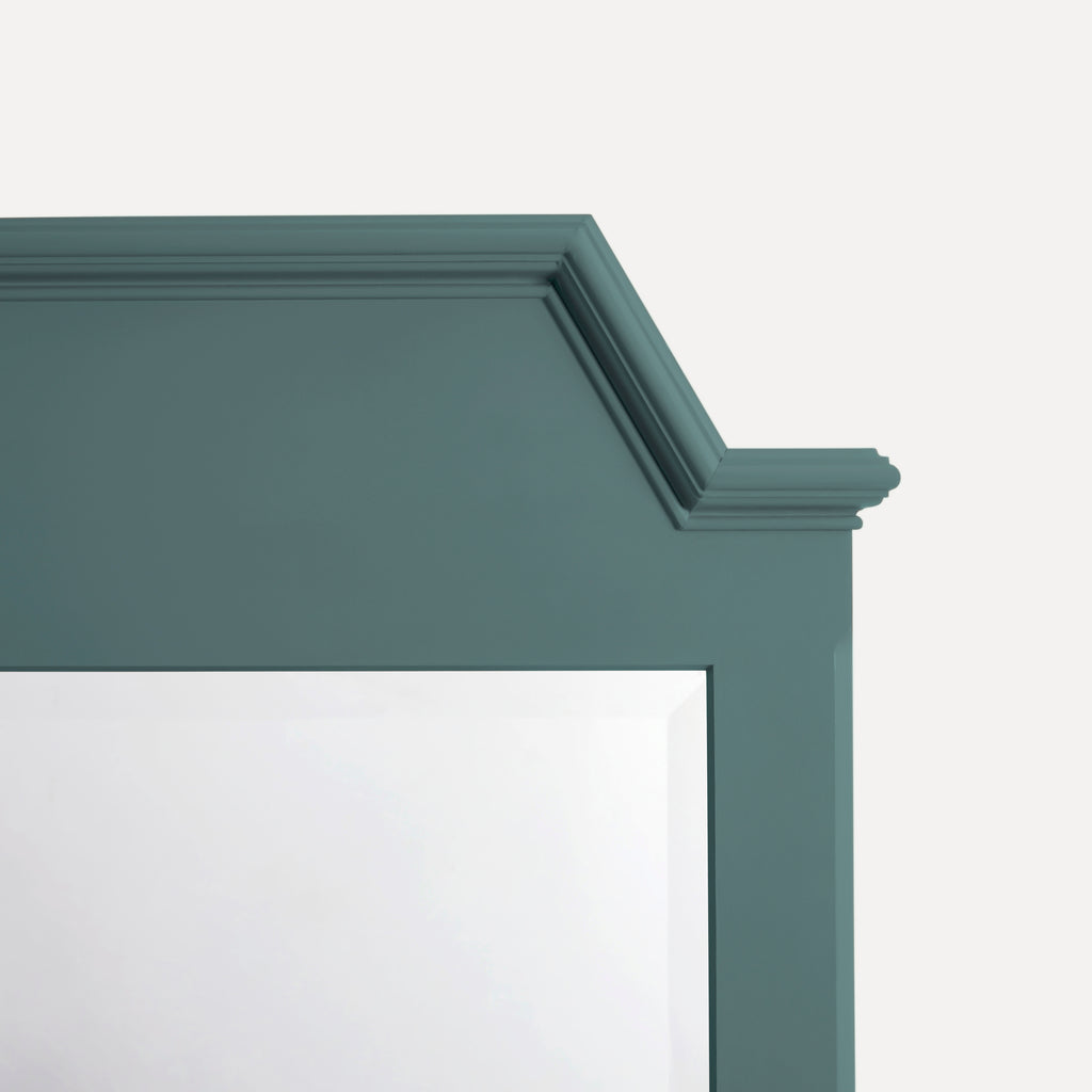 Green crown mirror molding with bevelled glass on a white background